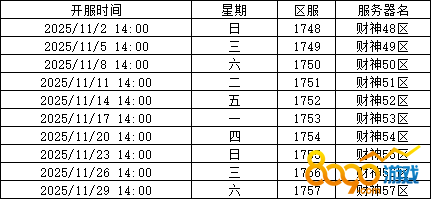 《神仙道》目前11月新服开启具体时间安排如下:
