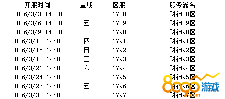 《神仙道》目前3月新服开启具体时间安排如下: