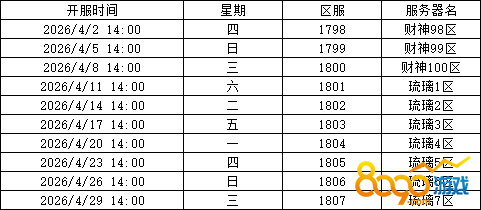 《神仙道》目前4月新服开启具体时间安排如下: